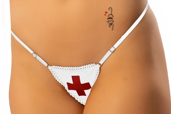 "Tang ENFERMERA" En V. Talle S regulable. Color: blanca y roja
