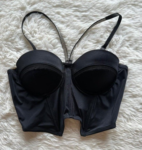 Corset con ballenas y strass (tira desmontable). Armado con aro. Negro. Talles S y L