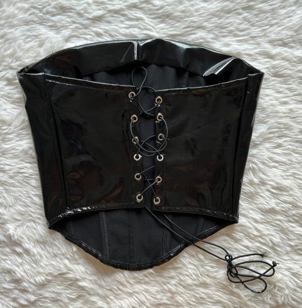 "Corset DOMINEX Charol elastizado negro. Con ballenas y cordón. Talles 1-2