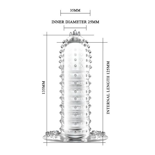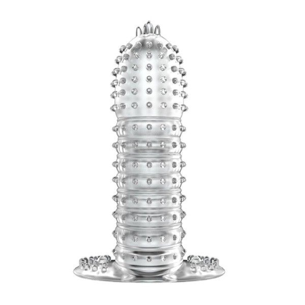 Totalmente transparente y de textura ultrasuave, está fabricada en TPR elástico, un material flexible que se adapta cómodamente a casi cualquier tamaño de pene. Además de aumentar la longitud y el grosor, permite prolongar la erección y mejorar el rendimiento.