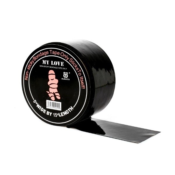 "CINTA TAPE" Cinta para Bondage autoadhesiva sin pegamento (se pega a sí misma). Tamaño: 5 cm de ancho, 15 mts. De largo. Color: negra