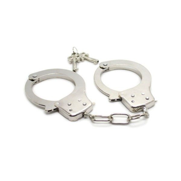 "Esposas de metal CÁSICAS" Clásicas esposas de metal para encender todas tus fantasías. Regulables. Vienen con llaves y traba de seguridad incluida. Tamaño: mediano. Color: plata. Metal liviano