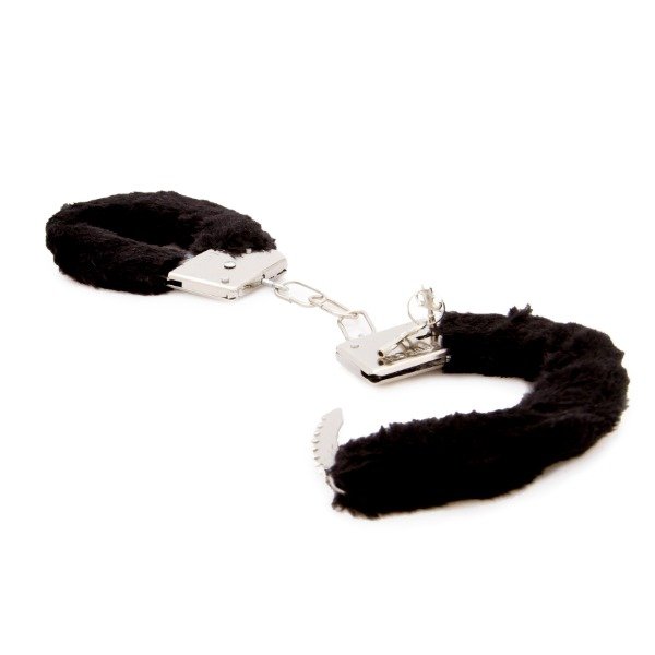"FURRY CUFFS" Pasión cautivadora. Clásicas esposas de metal cubiertas de peluche para mayor comodidad. Viene con llaves y traba de seguridad incluida. Regulables. Color: negra