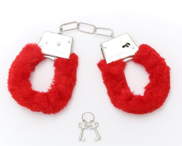 "FURRY CUFFS" Pasión cautivadora. Clásicas esposas de metal cubiertas de peluche para mayor comodidad. Viene con llaves y traba de seguridad incluida. Regulables. Color: rojas