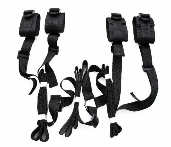 Esposas en una sóla pieza, para utilizar en la cama. Totalmente discretas, se guardan bajo el colchón. Hecha de correas súper resistentes. Regulable, apta para cualquier cama. Color: negro.