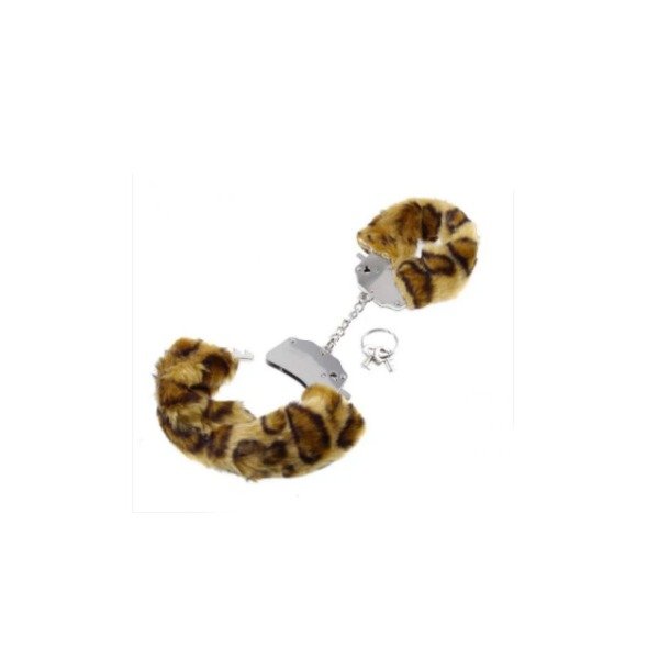 Esposas de material metálico forradas en suave piel sintética de estampado cheeta con juego de llaves.