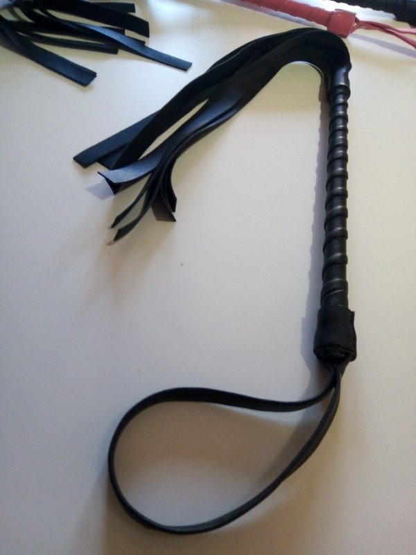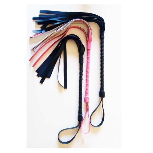 LÁTIGO Flogger de ecocuero con LAZO. ARTESANAL. Una exquisita pieza soft para el arte fetiche. Seductor y muy fina colección, detalles terminados a mano en los más finos materiales. Longitud: 50 cm. Color: negro