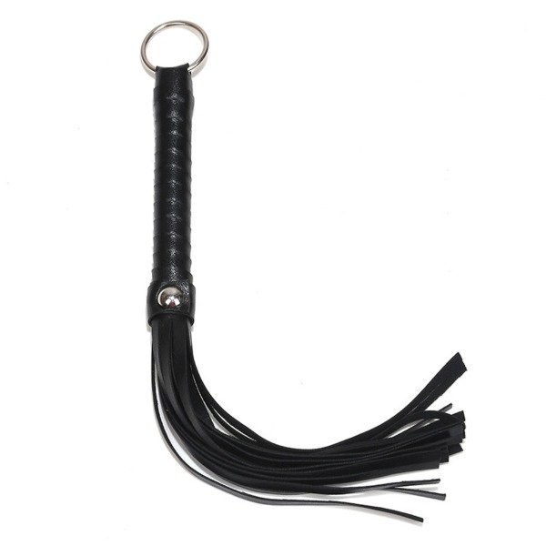 "LÁTIGO MINI CORTO" Flogger de CUERINA SINTETICA con ARO. Una exquisita pieza soft para el arte fetiche. Seductor y muy fina colección. Longitud: 27 cm.