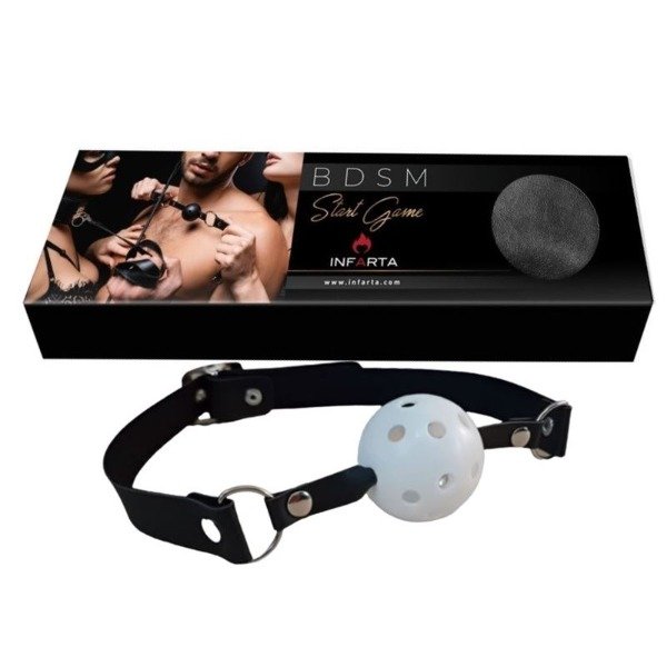 Explora una nueva forma de comunicarte sin decir una palabra. Quien use la nueva mordaza de bola para principiantes, cederá el control. Adentrate a un nuevo mundo de sumisión/dominación. La bola posee agujeros para la saliva y es movible lo que permite su uso adaptable al rostro. Medidas: 64 cm de largo, bola de 5 cm de diámetro. Color: negra y blanca