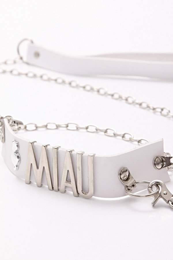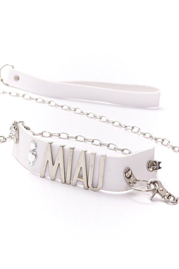 Choker "MIAU" con correa. Un collar de paseo implacable. Este collar sensual y delicado te producirá un suave tormento que te hará sucumbir en el éxtasis.