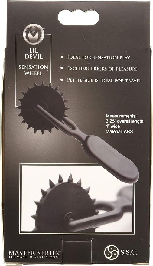 Rueda estimuladora. Este pequeño molinete dejará un rastro de sensación emocionante en su piel mientras se desliza suavemente sobre cada centímetro del cuerpo. Los picos afilados dan un pinchazo de placer, seguro que enviarán escalofríos de deleite por la columna vertebral. Ultra compacto y ligero, es una gran manera para que todos disfruten de un juego emocionante de sensaciones. Pase esta rueda de púas de primera calidad por la piel y otras áreas altamente sensibles para una excitante punzada de placer. Diseñado de manera tortuosa con una hilera de puntas afiladas espaciadas uniformemente que giran suavemente a medida que rueda por la carne, este instrumento está diseñado idealmente para un placer intenso y exquisito.