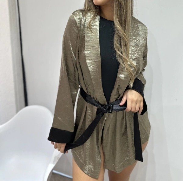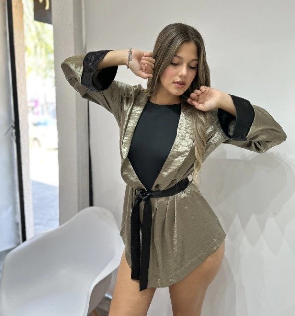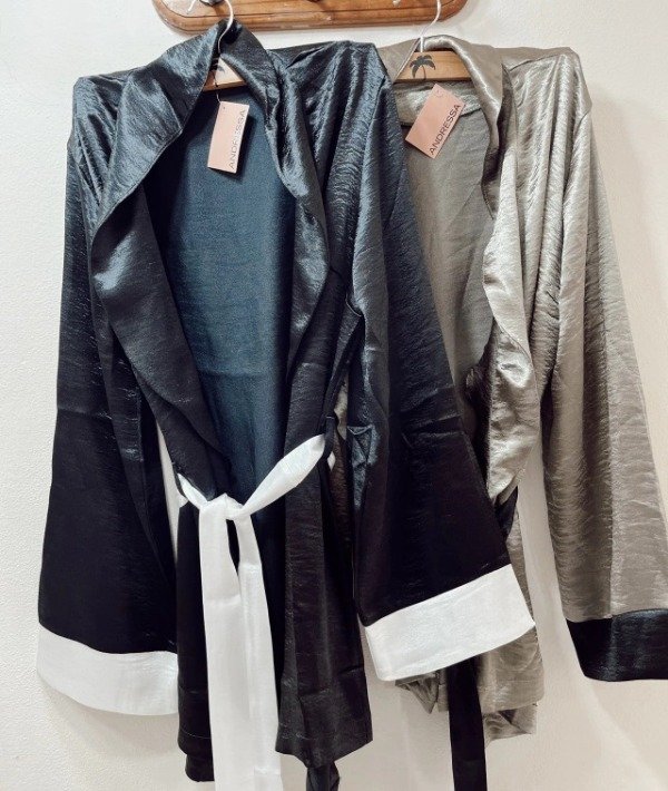 Bata de raso SEXY. Para usar con o sin ropa interior. Con lazo. De excelente calidad. Colores: Negro y blanco o Peltre y negro. Andressa